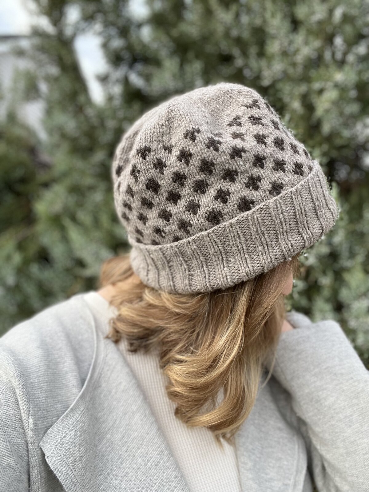 I whipped up this soft + warm microprint-inspired hat just as autumn leaves began to fall. The plusses remind me that every little positive thought, word, or action paves the way for a better outcomes. We don’t need to be heroes, just small-change makers in our everyday lives. Sized for everyone.
